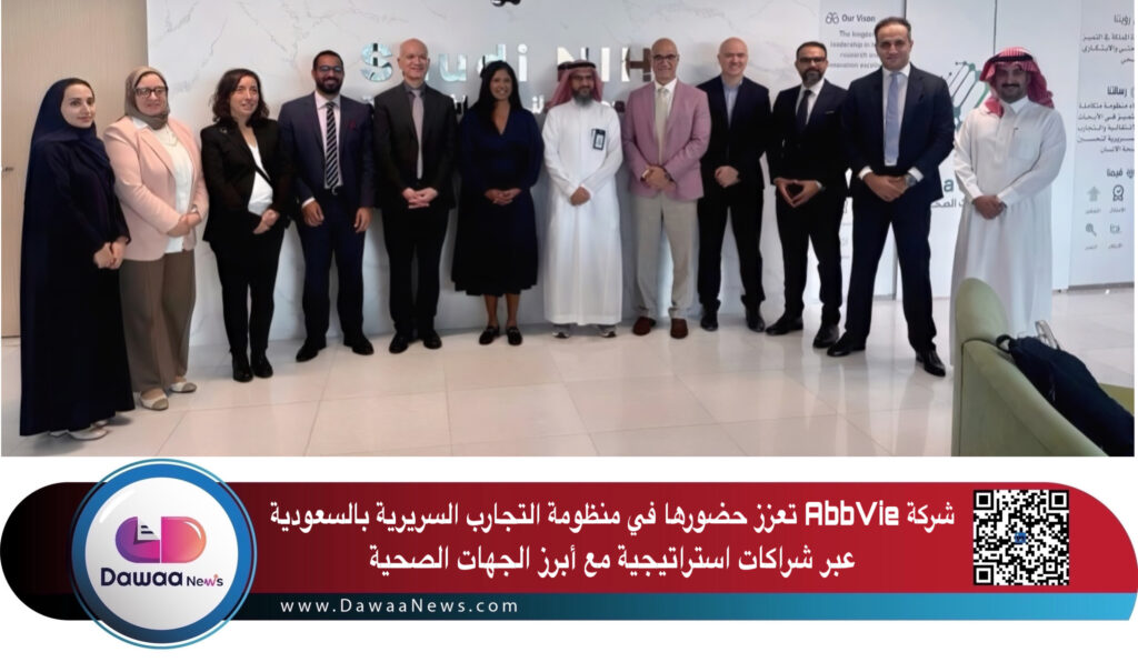 في خطوة استراتيجية تعكس التزامها بدعم الابتكار الطبي وتعزيز البنية التحتية للبحث السريري في المملكة العربية السعودية، أعلنت شركة AbbVie عن مشاركتها في اجتماعات رفيعة المستوى مع كل من المعهد الوطني للصحة (SNIH)، والهيئة العامة للغذاء والدواء (SFDA)، ومستشفى الملك فيصل التخصصي ومركز الأبحاث (KFSH&RC).