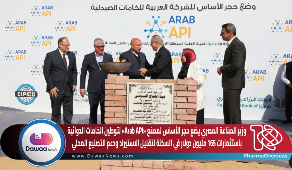 وزير الصناعة المصري يضع حجر الأساس لمصنع «|Arab Ap» لتوطين الخامات الدوائية باستثمارات 165 مليون دولار في السخنة لتقليل الاستيراد ودعم التصنيع المحلي