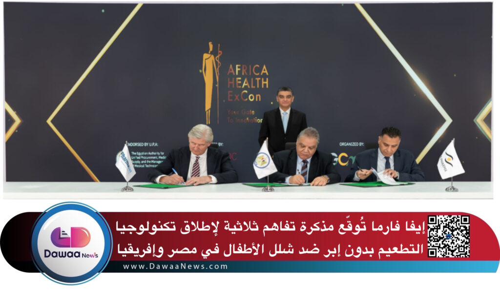 في خطوة تُعد علامة فارقة على طريق الابتكار الصحي في المنطقة، أعلنت شركة EVA Pharma عن توقيع مذكرة تفاهم ثلاثية مع شركة PharmaJet الأمريكية وهيئة الشراء الموحد المصرية (UPA)، بهدف نقل تكنولوجيا التطعيم بدون إبر ضد شلل الأطفال إلى مصر ومنها إلى إفريقيا.