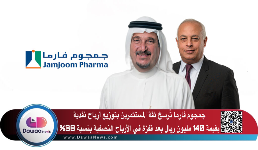 أعلنت شركة جمجوم فارما، إحدى الشركات الرائدة في قطاع تصنيع الأدوية بالمملكة العربية السعودية، عن توزيع أرباح نقدية بقيمة ريالين للسهم الواحد عن النصف الأول من العام الجاري 2025، وذلك بعد تحقيقها نموًا لافتًا في صافي الأرباح بنسبة 37.7% مقارنة بالفترة نفسها من العام الماضي.