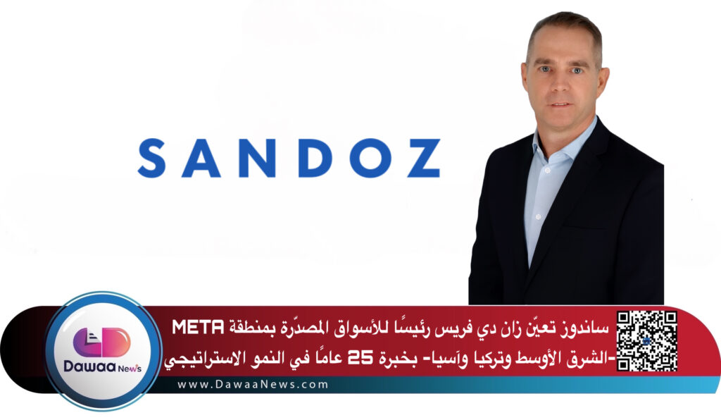 في خطوة تعكس التزام ساندوز بتعزيز قيادتها الإقليمية وتوسيع حضورها في الأسواق العالمية، أعلنت شركة Sandoz عن تعيين زان دي فريس، في منصب رئيس الأسواق المصدّرة لمنطقة الشرق الأوسط وتركيا وأفريقيا (META).